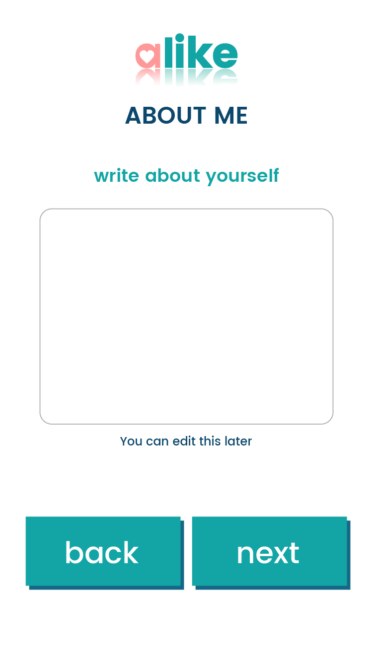 The main focus before going into UI, will be to fully explain the aLike Concept.